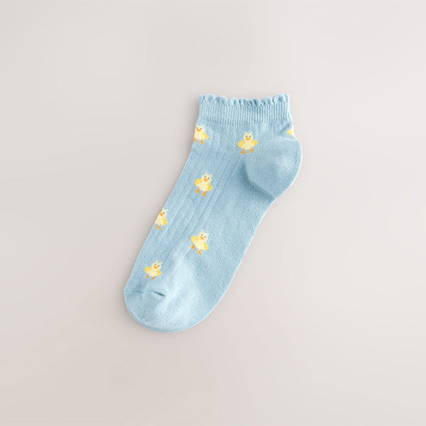 You're sure to have a spring in your step this season with this 5 pack of trainer socks. Featuring cute all-over spring animals, an elevated rib and feminine scalloped top, these are the perfect socks to wear with your favourite trainers this season.