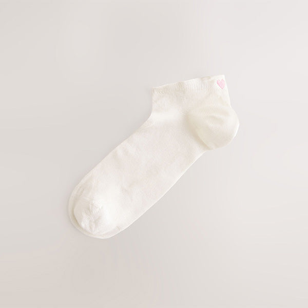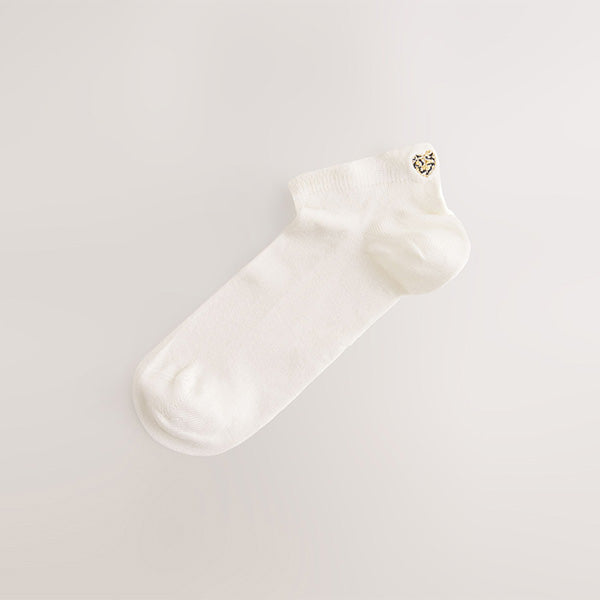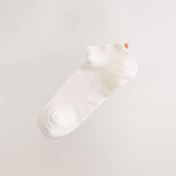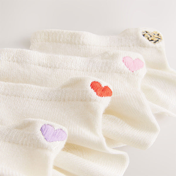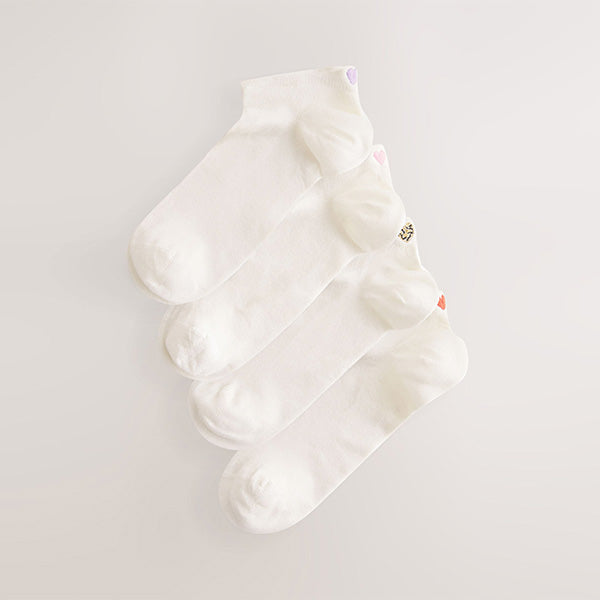 Ecru/Hearts Embroidered Motif Trainers Socks 4 Pack