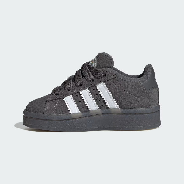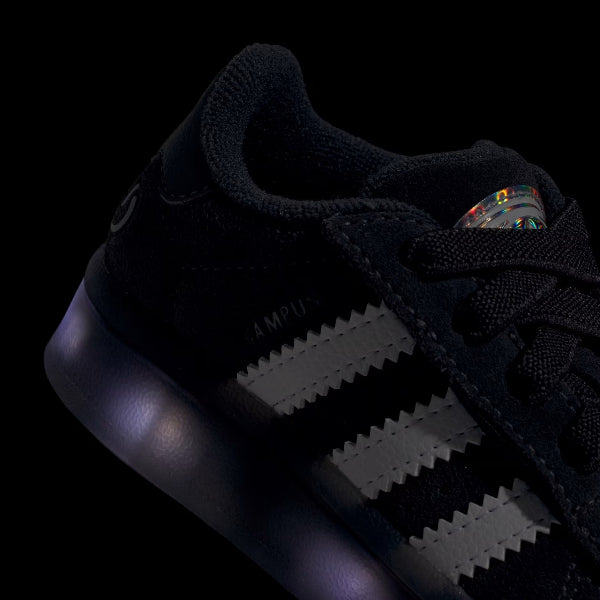 A new generation of icons starts here. These adidas Campus shoes for infants are a playful take on a classic style, with soft, supple upper and details designed with little feet in mind. The elastic laces stretch for easy on and off and a snug fit, while the lining and outsole keep your little one's little feet comfortable. Press play the built-in LEDs light up for a dazzling show.