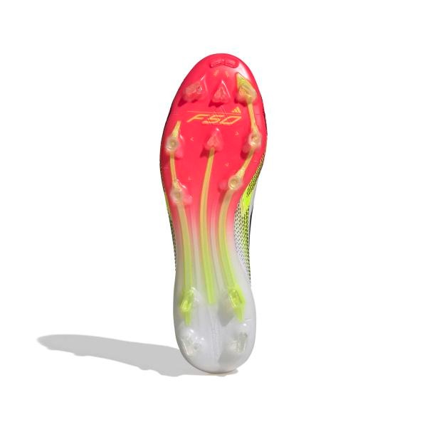 Push your pace to the limit in lightweight adidas F50 footwear engineered for speed. These Elite football boots have a thin Fibertouch upper with a Compression Fit Tunnel Tongue for lockdown and a Sprintweb 3D texture to help keep the ball close when you're flying. Designed for firm grass pitches, the springy Sprintframe 360 outsole delivers serious acceleration.