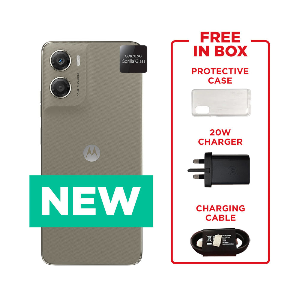 Included in box : FREE Motorola charger + FREE charging cable + FREE Motorola protective case.