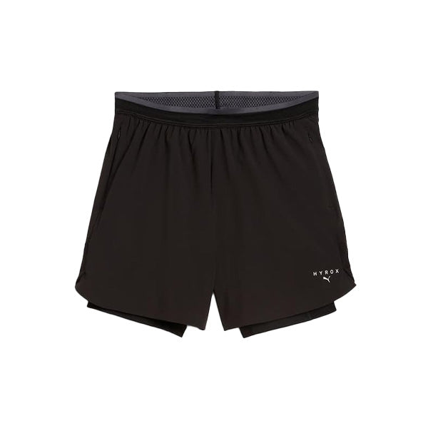 Push your limits with PUMA x HYROX training shorts. Featuring a 5" in-seam, branded elastic waistband, and graphic linear engineered knit. Stay dry with dryCELL technology and enjoy the freedom of movement. Perfect for those who demand performance and style.
