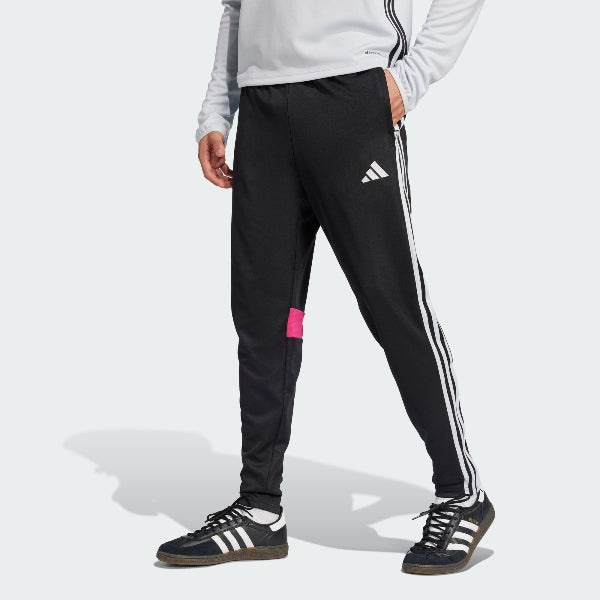 Bring your beautiful game everywhere you go. These Tiro 25 Essentials pants from adidas take their lead from football training apparel to offer a sporty look and comfortable feel. AEROREADY controls moisture to keep you dry, while zip pockets securely stow must-haves. With their smooth fabric and bold style, these track bottoms will quickly become first pick from your wardrobe. This product is made with 100% recycled materials. By reusing materials that have already been created, we help to reduce waste and our reliance on finite resources and reduce the footprint of the products we make.