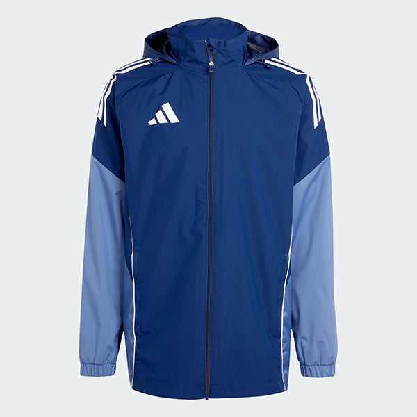 Be ready for everything Mother Nature can throw at you in this adidas Tiro 25 Competition jacket. Designed to help you power through the elements, its soft plain weave fabric has your back until the coach calls time on football training. That hood keeps you dry during light showers but packs away when you need a more streamlined silhouette. This product is made with at least 70% recycled materials. By reusing materials that have already been created, we help to reduce waste and our reliance on finite resources and reduce the footprint of the products we make.