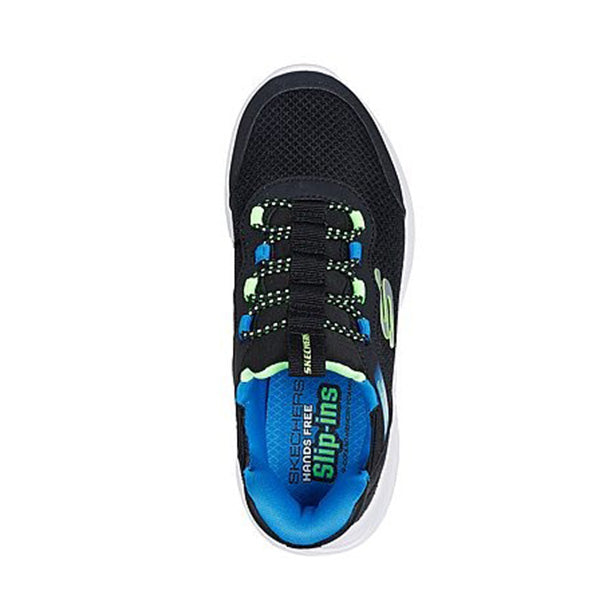 Effortless comfort to start your day is here with Skechers Hands Free Slip-ins®: Bounder - Brisk-Burst. Designed with our exclusive Heel Pillow®. This TOUCHLESS FIT® non-contact style features a mesh and synthetic upper with elastic laces, Skechers adaptive closure, and a cushioned insole with Skechers Air-Cooled Memory Foam®.