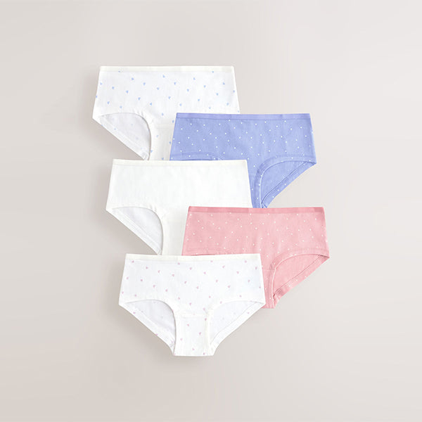 Keep her comfortable every day with this 5 pack of hipster briefs. The low-rise shape, low leg, and deep side seams offer a comfortable fit. Crafted from super soft cotton with added stretch for comfort and shape retention after washing, this pack includes a mix of plain and charming floral print designs.