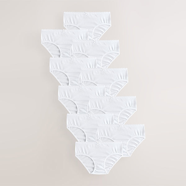 Our 10 pack of white classic briefs has a high rise, low leg shape with deep side seams, a double layered gusset and elasticated trim at the waistband and leg. In a supersoft cotton with added stretch for comfort and shape retention after washing.