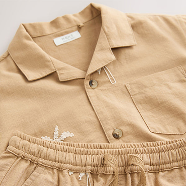This 2-piece set is made from pure cotton in a textured finish, across a short sleeve shirt with a button-down fastening, a revere collar and a chest pocket, alongside a pair of matching shorts with an elasticated waistband.