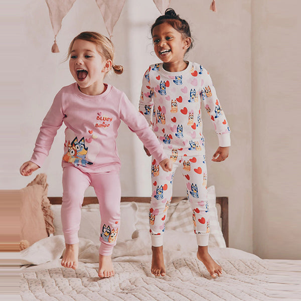 Let Bluey and Bingo help your little one drift off into dreamland with our 2 pack of pyjamas. Made from pure cotton, each pyjama set contains a long sleeve top and elasticated bottoms that are coated in a fun Bluey print.