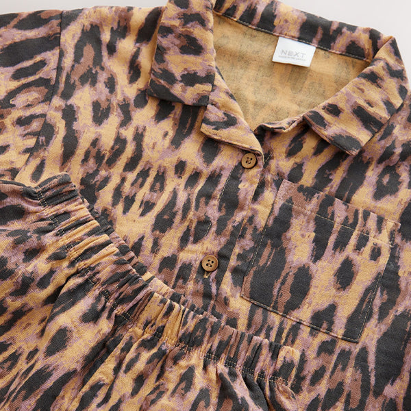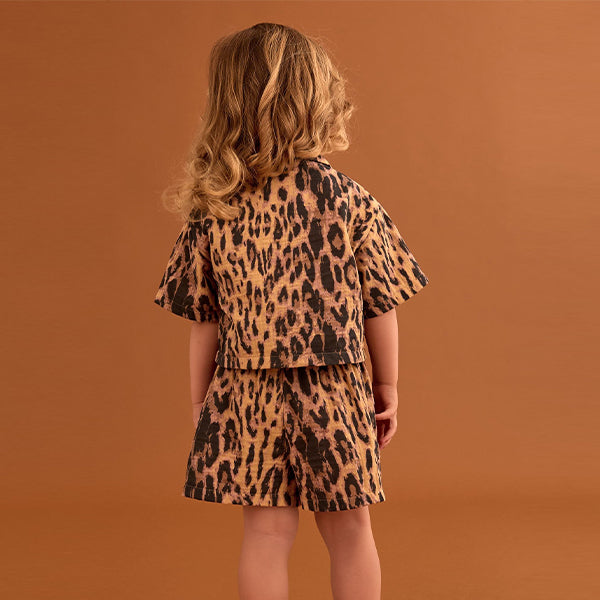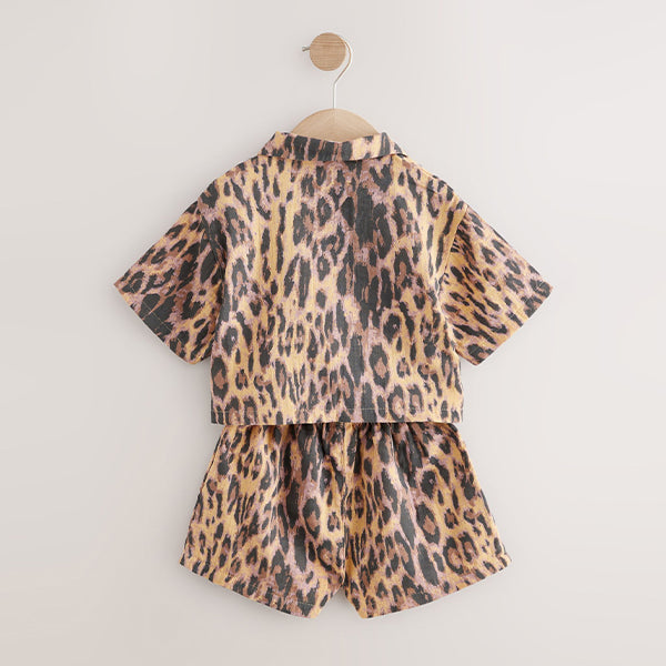 Get her destination ready with our cotton shirt and shorts co-ord set. Featuring a button-down short sleeve shirt and pull-on shorts that are both adorned in a trendy leopard print. This set is perfect for her holiday wardrobe.