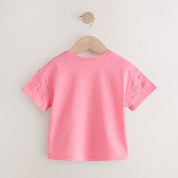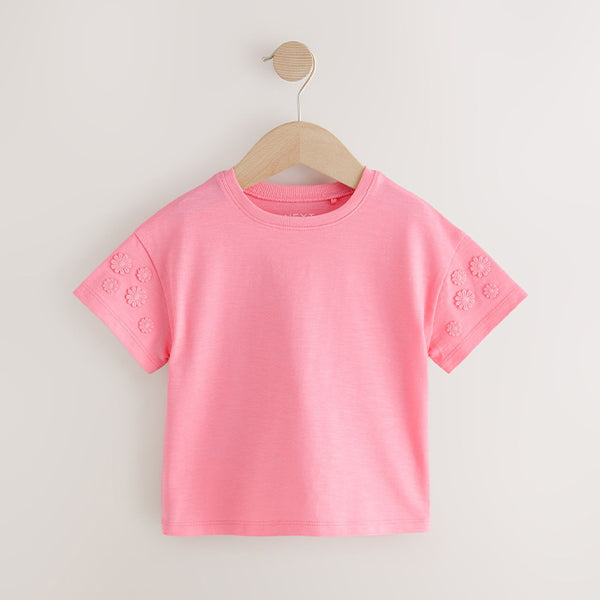 Made from pure cotton, this short sleeve t-shirt has pretty embroidered daisy detailing and a crewneck collar, perfect for adding a statement look to their everyday outfits.