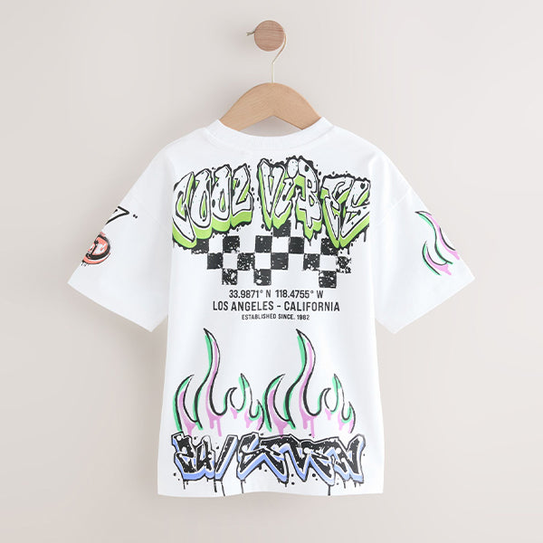 Add to their cool kid style with our relaxed fit white graffiti short sleeve t-shirt. With an eye-catching design and comfortable relaxed fit, they'll look as cool as they feel.