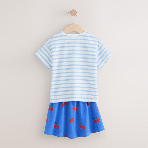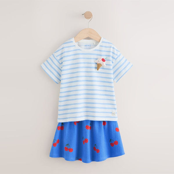 This 2-piece set is a fuss-free outfit, featuring a short sleeve t-shirt with a crewneck collar alongside a textured skirt with an elasticated waistband, made from pure cotton.