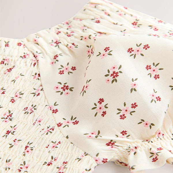 This lightweight playsuit is perfect for special occasions or everyday summer outfits, made from a soft fabric in a pretty ditsy floral print, finished with short puff sleeves.