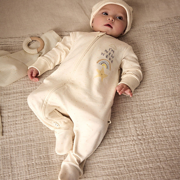 Sleepsuit and Hat 100% Cotton.