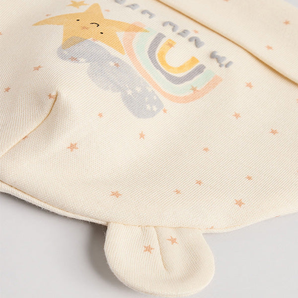 Perfect for welcoming new arrivals, this cute set features a pure-cotton sleepsuit with a two-way zip fastening, long sleeves with turn-back sleeve cuffs for sizes 3-6 months and an embroidered 'I'm new here' slogan graphic, finished with inner lined feet and a matching beanie-style hat with 3D ears to the crown.