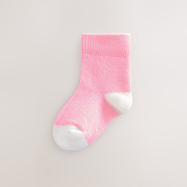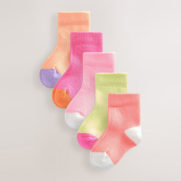 Stock up on baby essentials with this 5 pack of pink socks. In a supersoft cotton rich blend, these socks feature a fun colour design.