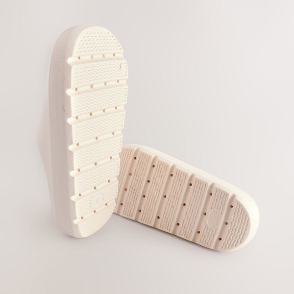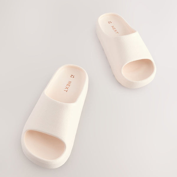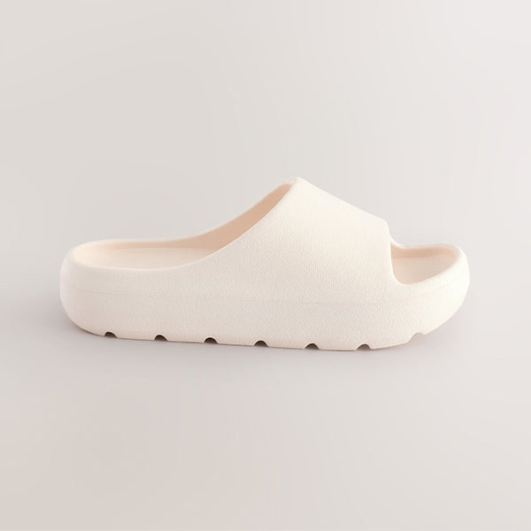 Lightweight and comfortable, these sliders have a chunky profile with an open toe and a one-piece design, finished in a bone white hue.