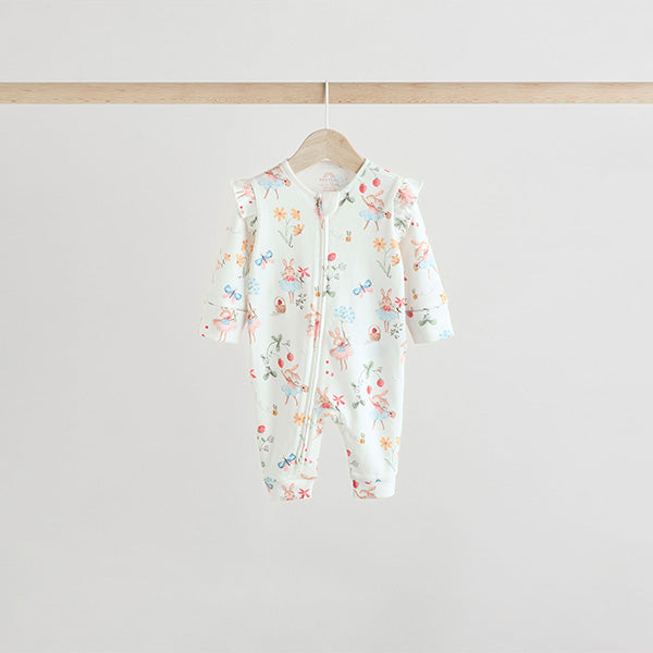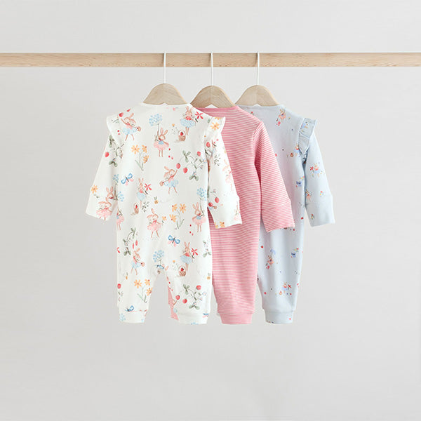 This cute 3-pack of sleepsuits will lull your baby into a comfortable sleep, featuring a pure cotton fabric with a two-way zip fastening and a footless design, finished with turn-back scratch mitts for sizes up to 3-6 months.