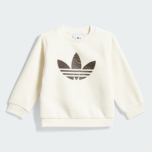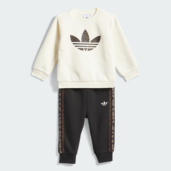The Loose Crew Set is a playful nod to adidas' rich heritage, inspired by a goalkeeper jersey from our archives. This set brings a touch of nostalgia with its bold tiger pattern, embodying the Originals ID. Crafted from a soft fleece blend, it provides a cosy feel against the skin. The regular fit offers a relaxed silhouette, allowing your little one to move freely during playtime. Featuring a crew neckline and a drawcord closure, the set is easy to put on and take off, making dressing a breeze. The embroidered Trefoil logo adds a classic adidas touch, celebrating the brand's iconic identity. Whether it's a day at the park or a casual outing, this set is designed to keep your child comfortable and stylish on everyday adventures.
