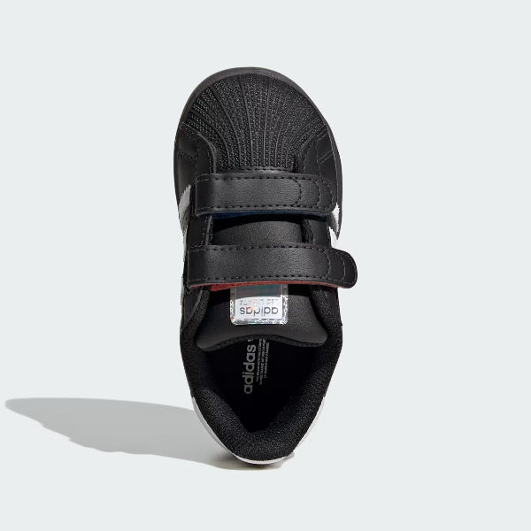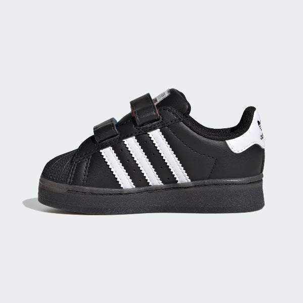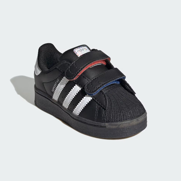 These infants' adidas Superstar shoes press play on light-up fun. Hook-and-loop straps make them easy to slip on and off, keeping infants comfortable as they learn to stand, sit and squat. A textile lining, synthetic upper and rubber outsole provide flexibility and grip for their every move. Inspired by the iconic adidas Superstar trainers for adults, these shoes bring sporty style to the smallest members of the family.