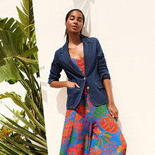 A tailored take on a tried and tested favourite, our denim rinse single breasted blazer will smarten up your casual fits in an instant. Made from beautiful blue denim with a double button fastening. Style over a floaty summer dress with sandals or pair with cargo trousers and a crisp white tee. Smart, casual and everything in between. A true wardrobe hero.