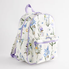 The perfect backpack for all their nursery needs. Includes a main zipped compartment, separate front pocket and a side drinks bottle holder. The bag is also finished in a bluebell fairy all-over print, with a wipeable PU coating.