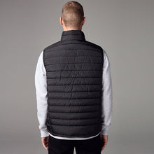 Our lightweight puffer gilet in black is perfect as a mid-layer, with a warm quilted construction, a full zip fastening and hood. The perfect transitional layer.