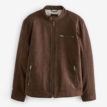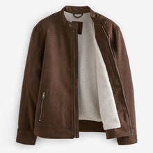 Channel the edgy trend with our men's brown faux suede biker jacket. Made from a soft faux suede fabric, this rich brown jacket features borg lining for added warmth. Finely finished with zip fastening, pockets and a racer snap neck, this stylish jacket makes the perfect outerwear piece for the transitional season.
