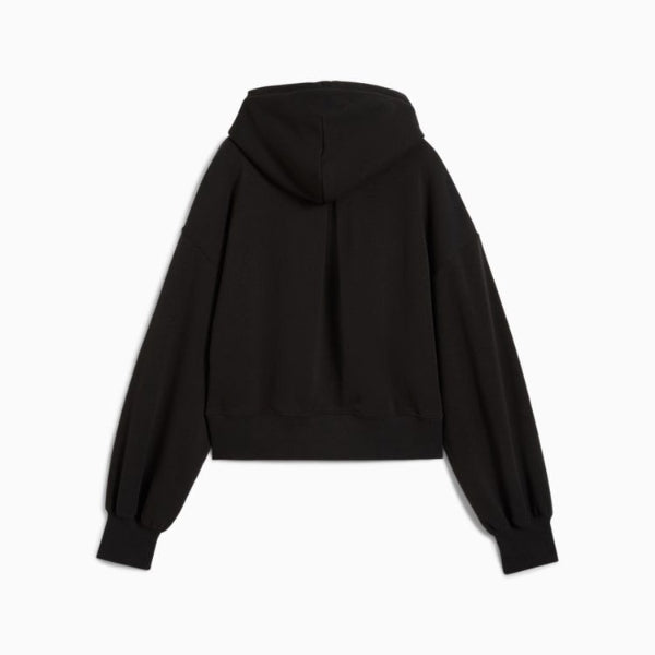 Unleash your inner trendsetter with this PUMA cropped hoodie. Featuring a sleek logo, tonal drawcords, and bell sleeves, it's perfect for making a statement. Ribbed cuffs and waistband add a touch of finesse, ensuring you stand out effortlessly.