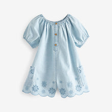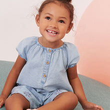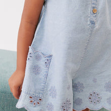 • Load image into Gallery viewer, Denim Broderie Playsuit (3mths-5-6yrs)