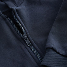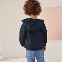 Your little dude will love this navy blue cotton-rich jersey fabric hoodie, featuring a full zip fastening, a set-in hood and dropped shoulders, finished with dual side pockets and ribbed hems.