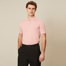 Upgrade your day-to-day polo shirt with this stylish, pink zip-neck top. This polo shirt has a classic regular fit, with a collared design and a ribbed hem, perfect for wearing with jeans or suit trousers.