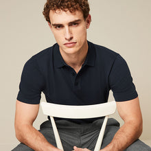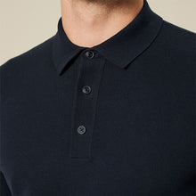 Perfect for casual or smart casual looks, this stylish navy blue polo shirt features a regular fit and a knitted construction, a button-up neck and a classic collar.
