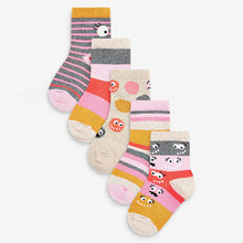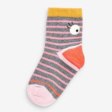 • Load image into Gallery viewer, Pink/Grey 5 Pack Cotton Rich Monster Ankle Socks (Older Girls)