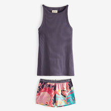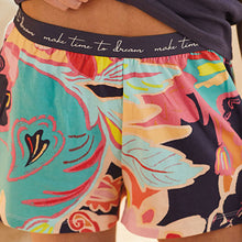 This pyjama shorts set is crafted in a soft and breathable cotton blend. The vest features a textured rib design on a solid colour base. The coordinating shorts are designed with a striking floral print, elasticated waistband and slogan print.