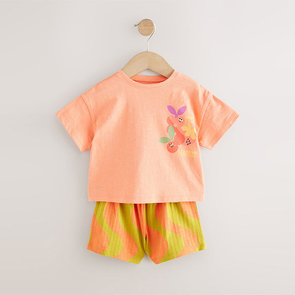 Our cotton t-shirt and shorts set is perfect for easy dressing. With a short sleeve t-shirt and a pair of elasticated shorts, this dreamy duo is complete with a fun graphic print design.
