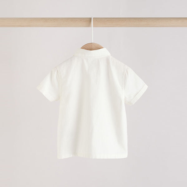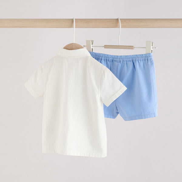 Elevate their wardrobe with this 100% cotton two piece set. Made for summer styling, it includes a short sleeve button-down shirt and elasticated shorts with pockets. In a fun print, it will be a firm favourite for their holiday attire.
