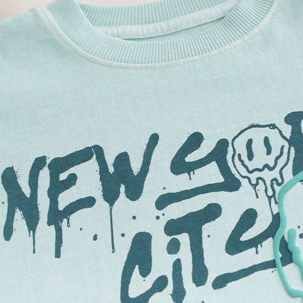 Light Blue Relaxed Fit Washed Short Sleeve Graphic Print 100% Cotton T-Shirt (3-12yrs)