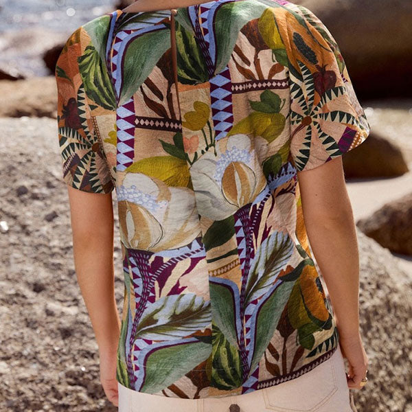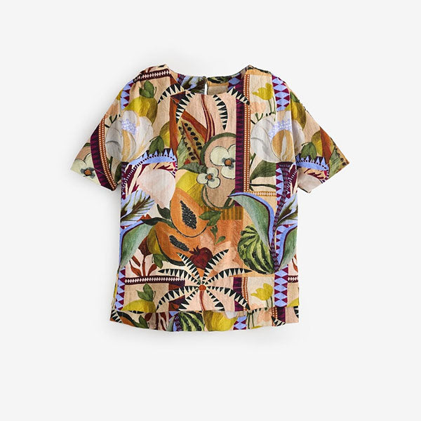 In an on-trend boxy shape with a relaxed hem, this stylish t-shirt is made from a textured lightweight fabric, with a flattering scoop neckline, finished with short sleeves.