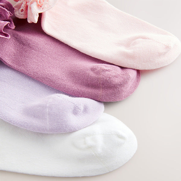 This pretty 4 pack of cotton rich socks features a broderie lace trim around the welt. Biome treatment has been applied to sizes 6-8.5 upwards to keep the feet feeling fresh for longer.