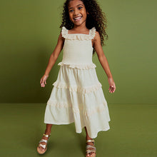 • Load image into Gallery viewer, White Broderie Tiered Jersey Midi Dress (3-12yrs)