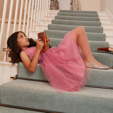Your little angel is going to love twirling in this beautiful princess dress. Perfect for all of her special occasions, this charming prom-style dress covered in a pretty butterfly print is made from soft tulle that is gathered at the waist with a metallic belt that fastens at the back with a bow. The sleeveless party piece is finely finished with a frothy layered skirt and can be worn effortlessly with sparkly ballet pumps.