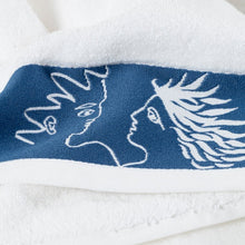 Laissez-vous séduire par la collection Célestes et son décor poétique, décliné en coloris bleu nuit et blanc. Confectionné en bouclette de coton, ce drap de bain célèbre l’héritage de Jean Cocteau à travers un motif d’amoureux à l’esprit graphique et romantique. Succombez à la tendance visages et corps avec cette parure de bain et son joli liteau en jacquard de qualité haut de gamme.