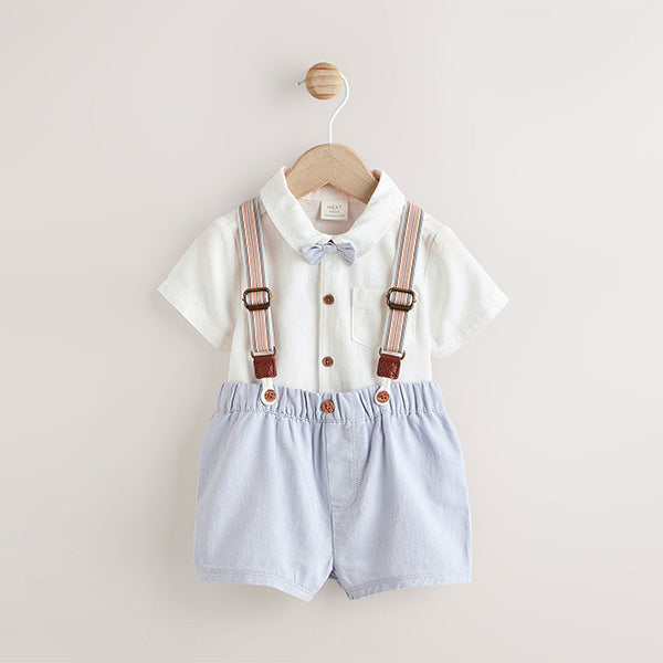 Shorts, Shirt and Bow Tie 100% Cotton. Braces 88% Polyester, 12% Elastane.