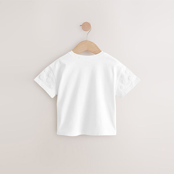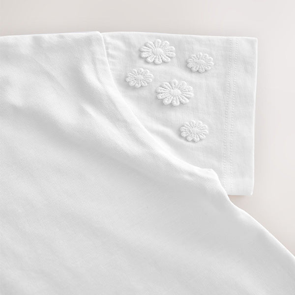 Made from pure cotton, this cream short sleeve t-shirt has pretty embroidered daisy detailing and a crewneck collar, perfect for adding a statement look to their everyday outfits.