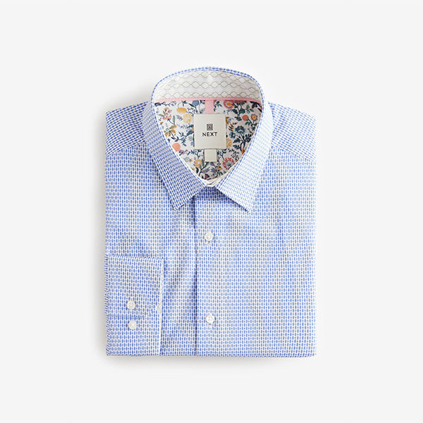Blue Regular Fit Smart Cotton Rich Trimmed Textured Shirt