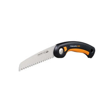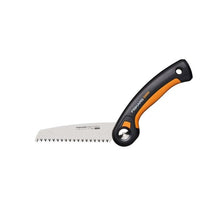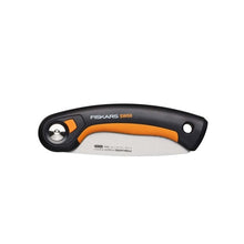 With its three-position locking blade, the Fiskars Plus™ SW68 folding saw (15 cm) ensures that you always work at an optimal cutting angle. The Power-Tooth blade is extremely sharp with triple sharpening for fast, clean cuts. It is lockable in position, straight, 90°, cut from under, and closed for safe storage and transport. A perfectly clean cut in 3 simple steps. Start by cutting the bark from the bottom of the branch using the cut from below position. Then, use the upright or 90° position for more leverage, and cut the branch a few centimeters from the cut made underneath. Finish by cutting off the stump that remains on the trunk. The ergonomic handle has a Softgrip™ coating for a comfortable, non-slip grip and easy blade change (replacement blade: # 1067554) guarantee the performance of this saw season after season.