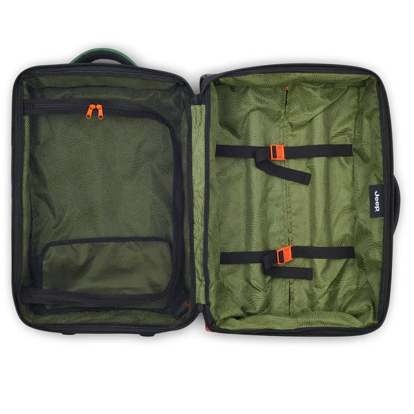 The small soft travel bag on wheels from the Delsey Jeep collection was created for travelers who want to embark on a great adventure. Durable, functional and ecological, it is ideal for long trips into unknown terrain. Made with recycled materials, it combines the robustness of the Jeep brand with the environmental care of the Delsey brand.
