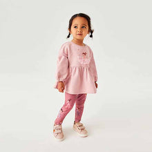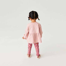 Made from a soft midweight cotton for long lasting comfort, this top and leggings set is perfect for stocking up their warmer wardrobe. The top features peplum sleeves and a pleated skirt. The matching leggings are designed with an elasticated waistband for fuss free changing.